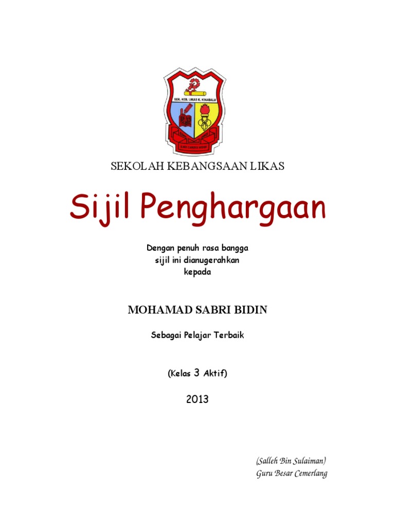 Contoh Sijil Penghargaan Dan Boleh Diedit